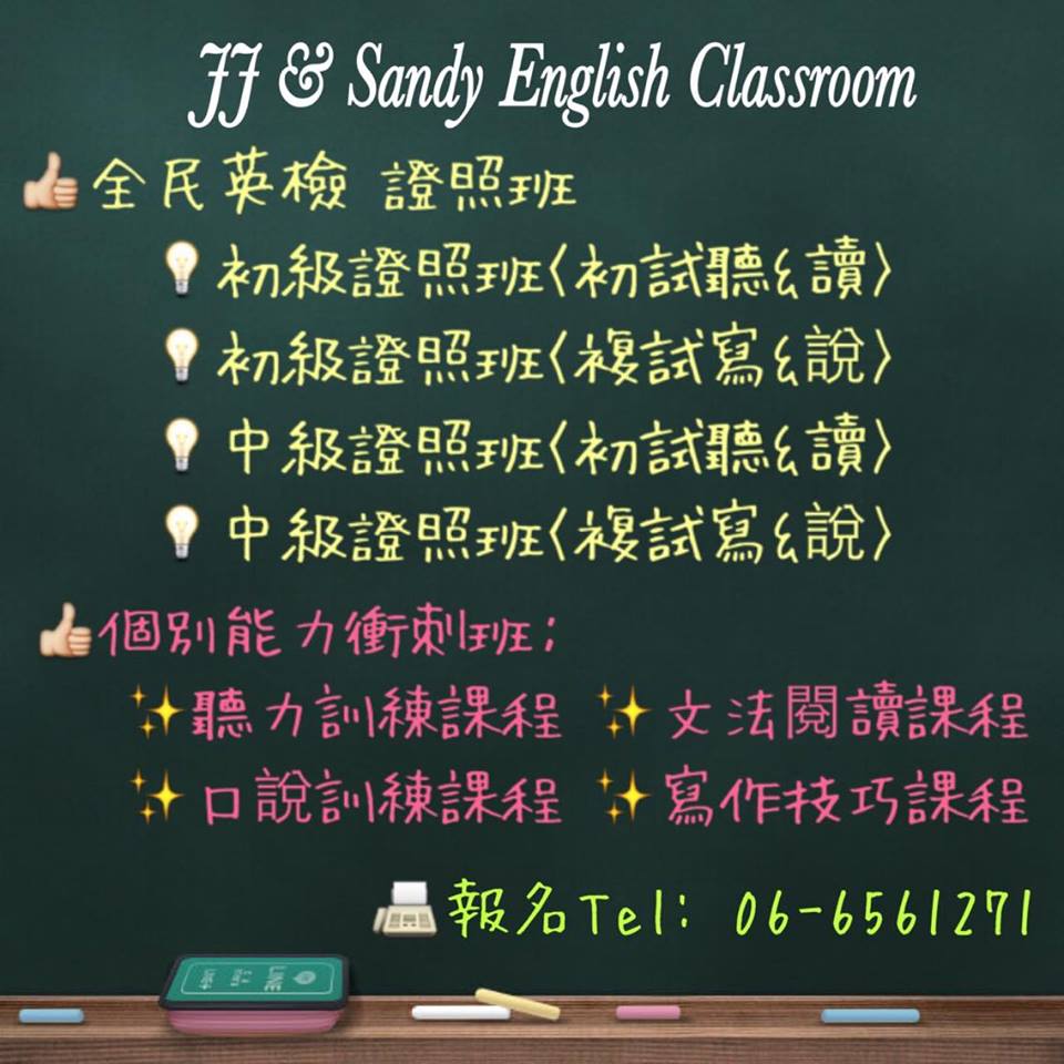 <JJ & Sandy’s English Classroom 報名專線:06-6561271>